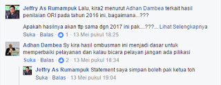Dilain pihak, Mantan Walikota Gorontalo H. Adhan Dambea,SH., S.Sos.,M.Si ketika diwawancarai via Komentar di Group Facebook, mengatakan bahwa Penilaian Ombudsman tersebut dapat menjadi dasar perbaikan untuk memperbaiki pelayanan di Pemerintah Kota Gorontalo.“ dan jangan harus ada pilih kasih.” Tegas Pria yang juga mantan Ketua DPRD Kota Gorontalo itu.