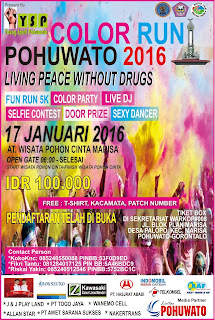 Mewakili para kaula muda Komunitas Young Sprit Pohuwato (YSP) rencananya akan menggelar Festival Color Run se-Kabupaten Pohuwato yang dirangkaikan dengan Kampanye Anti Narkoba untuk seluruh element masyarakat, dengan memiliki tujuan untuk menyatukan para pemuda dan pemudi di Kabupaten Pohuwato khususnya Provinsi Gorontalo.