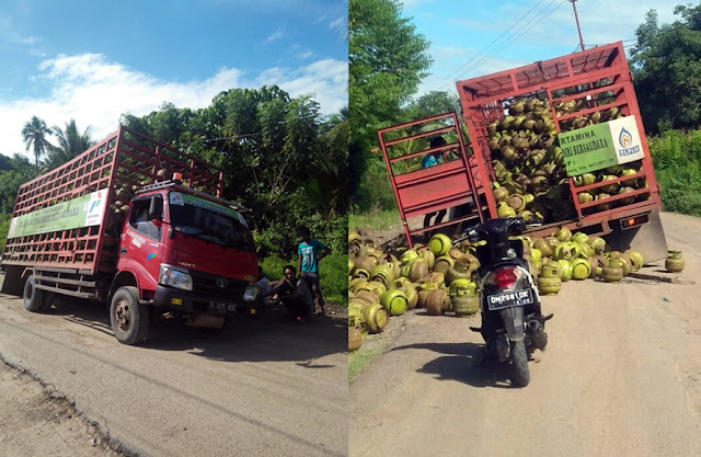 | Caption : Kondisi Jalan Trans Sulawesi Wilayah Wonggarasi Yang Membuat Salah Satu Mobil Distribusi Gas Elpiji Mengalami Kecelakaan |