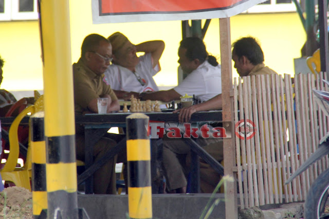 | Caption : Kepala Bagian Humas Pohuwato Bersama Salah Satu ASN Seentara Asik Bermain Catur Disalah Satu Warung Kopi Saat Jam Kerja |