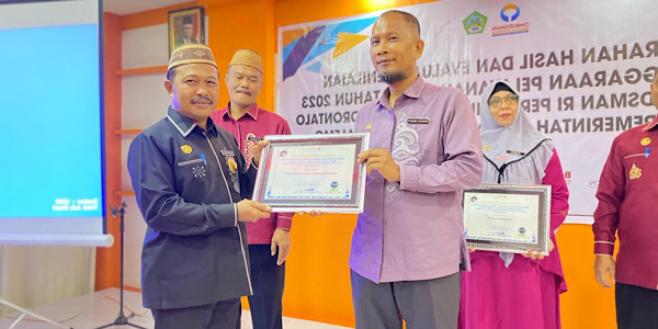 Penghargaan tersebut diberikan atas capaian Dinas Kesehatan Kabupaten Boalemo dalam pelayanan masyarakat dengan nilai 89,57.