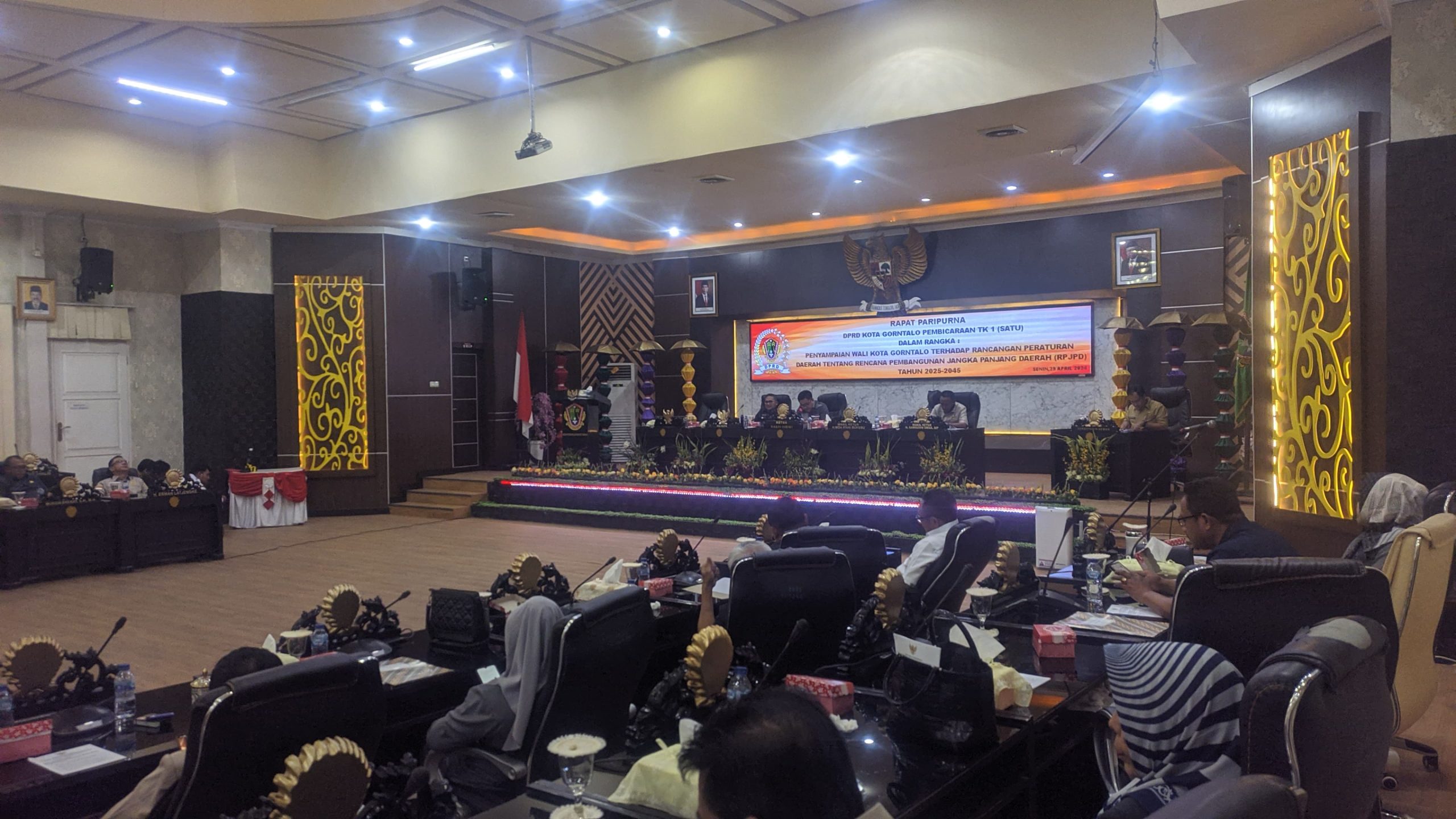 FaktaNews.com – Parlemen Kota. Dewan Perwakilan Rakyat Daerah (DPRD) Kota Gorontalo menggelar Rapat Paripurna tingkat I (Satu) dalam rangka Penyampaian Wali Kota Gorontalo terhadap Rancangan Peraturan Daerah (Ranperda) tentang Rencana Pembangunan Jangka Panjang Daerah (RPJPD) Tahun 2025 – 2045 di Aula I DPRD Kota Gorontalo. (29/04)