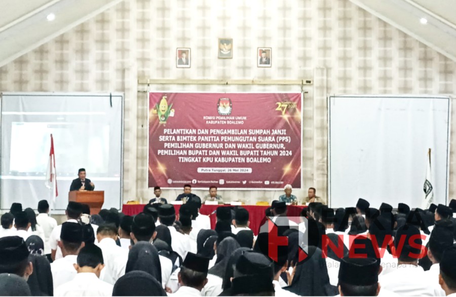 Faktanews.com, Boalemo – Komisi Pemilihan Umum (KPU) Boalemo, melantik 246 anggota Panitia Pemungutan Suara (PPS) se Kabupaten Boalemo, di Graha Putra Tinggal, Tilamuta, Minggu (26/5/2024).