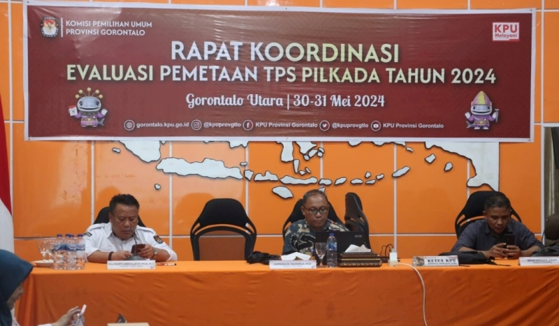 Faktanews.com – Kota Gorontalo, KPU Provinsi Gorontalo menggelar rapat koordinasi (Rakor) evaluasi pemetaan Tempat Pemungutan Suara (TPS) Pilkada 2024, di Kantor KPU Gorontalo Utara, Kamis (30/5/2024).