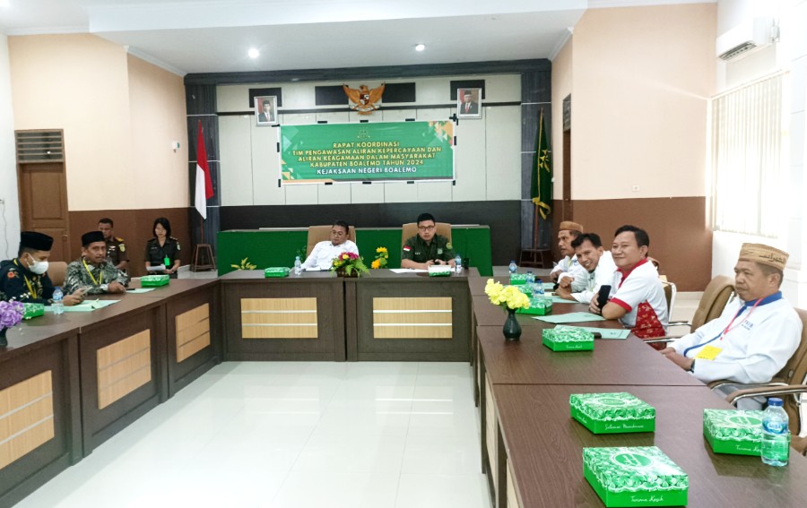Faktanews.com, Boalemo – Tim Pengawasan Aliran Kepercayaan dan Aliran Keagamaan dalam Masyarakat (Pakem) Kejaksaan Negri Boalemo, gelar rapat koordinasi tahun 2024, bertempat di aula Kejaksaan Negri Boalemo, pada Rabu (12/6/2024).