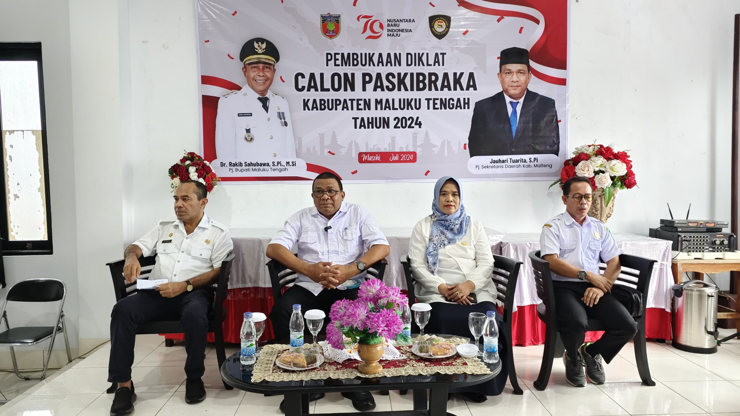 Faktanews.com,Masohi- Badan Kesatuan Bangsa dan Politik Kabupaten Maluku Tengah (KesbagPol Malteng), menggelar kegiatan Pendidikan dan Latihan (Diklat), bagi Calon Pasukan Pengibar Bendera Pusaka (Paskibraka) Kabupaten Maluku Tengah (Malteng). Kegiatan yang dipusatkan di ruang pertemuan salah satu Hotel di Masohi Rabu, (31/0724), dibuka oleh Penjabat Sekretaris Daerah (Pj Sekda Malteng), Jauhari Tuarita, mewakili Pj Bupati Malteng Rakib Sahubawa.