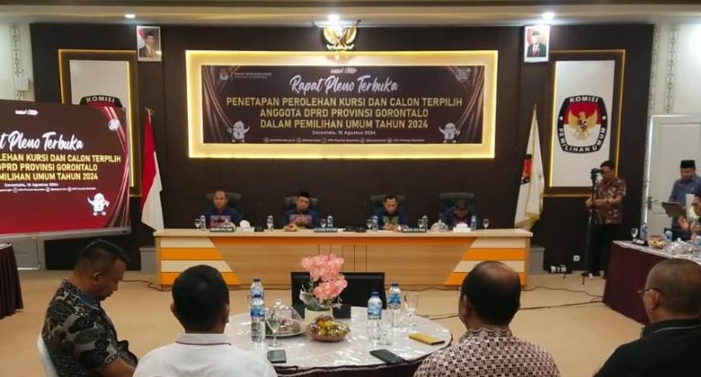 Faktanews.com – Gorontalo, KPU Provinsi Gorontalo menggelar Rapat Pleno Terbuka penetapan perolehan kursi dan anggota DPRD Provinsi Gorontalo Pemilu Tahun 2024, Jumat (16/8/2024).