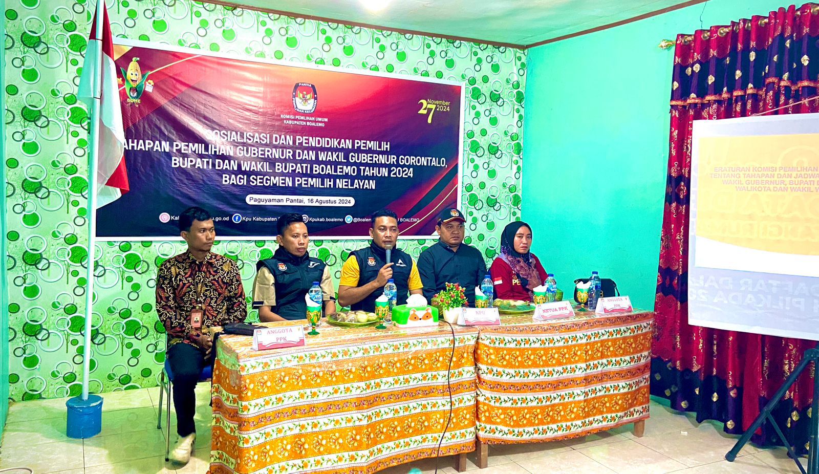Sosialisasi yang dilakukan oleh Divisi Sosialisasi Pendidikan Pemilih Parmas dan SDM, KPU Boalemo, menyasar segmen nelayan.