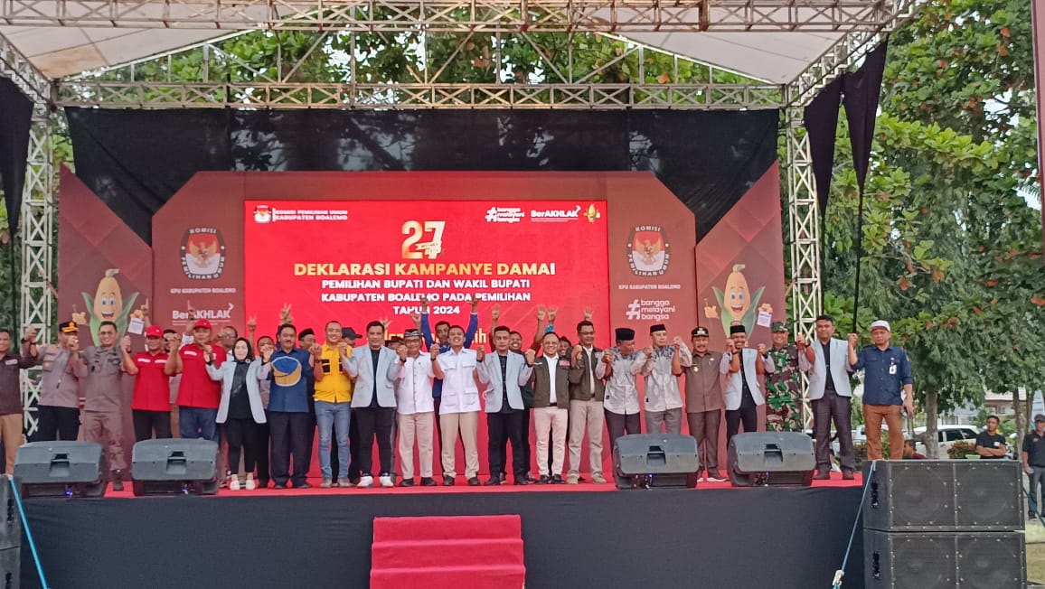 Dari pantauan media ini, deklarasi kampanye damai yang di laksanakan di Alun-alun Tilamuta, Boalemo itu dihadiri tim dari kelima pasangan calon Bupati dan wakil Bupati, partai pengusung, dan simpatisan calon.