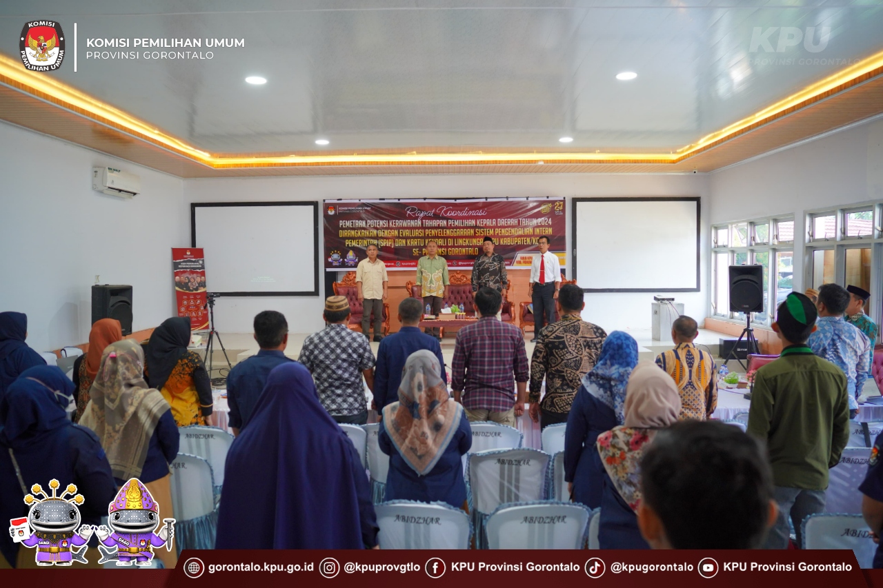 Rapat tersebut dibuka oleh Ketua KPU Provinsi Gorontalo, didampingi oleh Anggota KPU Provinsi Gorontalo, Opan Hamsah dan Risan Pakaya. Dalam sambutannya, Ketua KPU Provinsi Gorontalo menegaskan pentingnya pemetaan potensi kerawanan dalam setiap tahapan pemilihan kepala daerah. Pemetaan ini bertujuan agar proses pemilu dapat berlangsung dengan aman, tertib, dan adil.