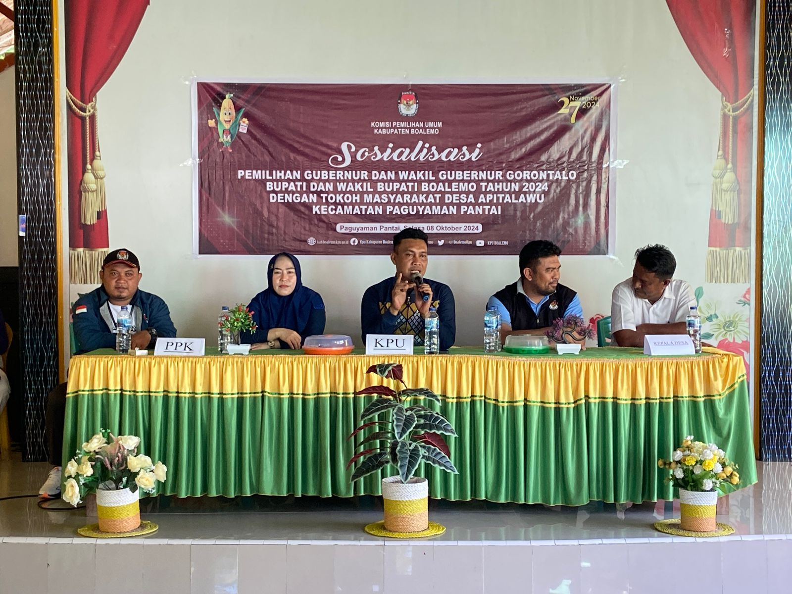 Faktanews.com, Boalemo – Komisi Pemilihan Umum (KPU) Kabupaten Boalemo melaksanakan sosialisasi terkait Pemilihan Gubernur dan Wakil Gubernur Gorontalo, serta Bupati dan Wakil Bupati Kabupaten Boalemo.