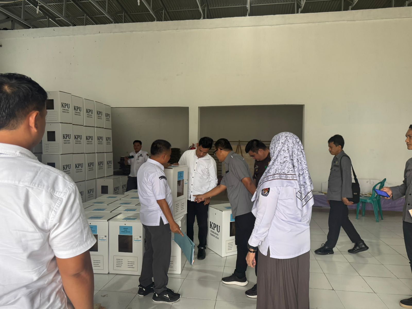 ” Monitoring tersebut mengecek lansung ruangan dan gudang penyimpanan logistik berupa surat suara yg sudah di sortir, lipat, hitung dan juga kelengkapan lainnya seperti kotak suara dan bilik Suara,” jelasnya.