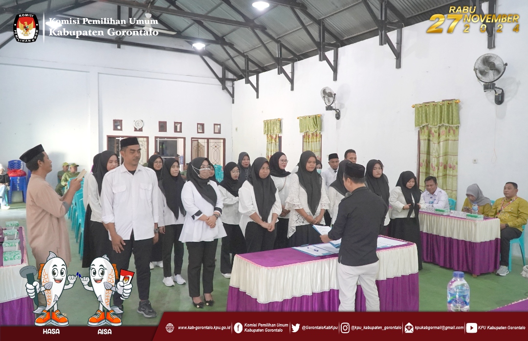 Faktanews.com, Kab. Gorontalo – KPU Kabupaten Gorontalo melaksanakan monitoring terhadap pelaksanaan pelantikan dan pengambilan sumpah Kelompok Penyelenggara Pemungutan Suara (KPPS) untuk Pemilihan Gubernur dan Wakil Gubernur serta Bupati dan Wakil Bupati Gorontalo 2024. Kegiatan ini berlangsung pada Kamis, 7 November 2024, di seluruh wilayah Kabupaten Gorontalo.