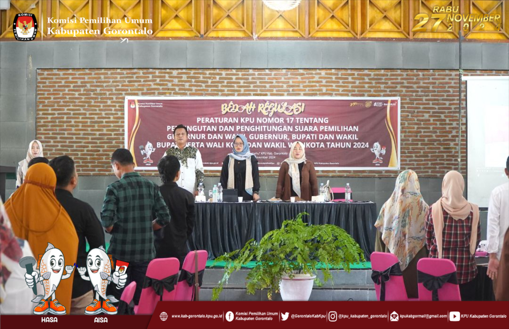 Plt. Ketua KPU Kabupaten Gorontalo, Windarto Bahua, dalam sambutannya mengungkapkan bahwa kegiatan ini sangat penting untuk memperkuat pemahaman badan adhoc terkait proses pemungutan dan penghitungan suara yang akan dilaksanakan oleh KPPS pada 27 November 2024 nanti. Windarto menekankan pentingnya kesepahaman mengenai regulasi teknis ini agar pelaksanaannya sesuai dengan ketentuan yang ada dan tidak melenceng dari aturan yang telah ditetapkan.