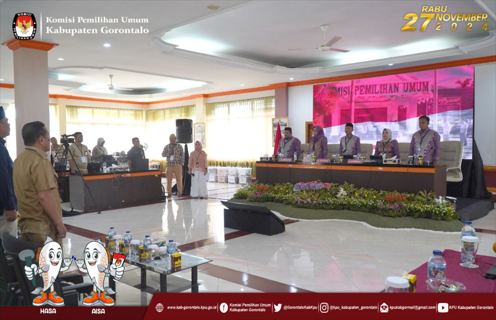 Kegiatan ini dibuka langsung oleh Ketua KPU Kabupaten Gorontalo, Windarto Bahua, dan dihadiri oleh Forkopimda Kabupaten Gorontalo, Anggota KPU Provinsi Gorontalo Risan Pakaya, Ketua dan Anggota Bawaslu Kabupaten Gorontalo, serta Anggota KPU Kabupaten Gorontalo: Kadir Mertosono, Hadijah Hamsah, Agustina Bilondatu, dan Sowan S. Dehi. Turut hadir pula Sekretaris KPU Kabupaten Gorontalo Adrian U. Mustapa, seluruh PPK se-Kabupaten Gorontalo, serta saksi dari pasangan calon gubernur dan bupati.