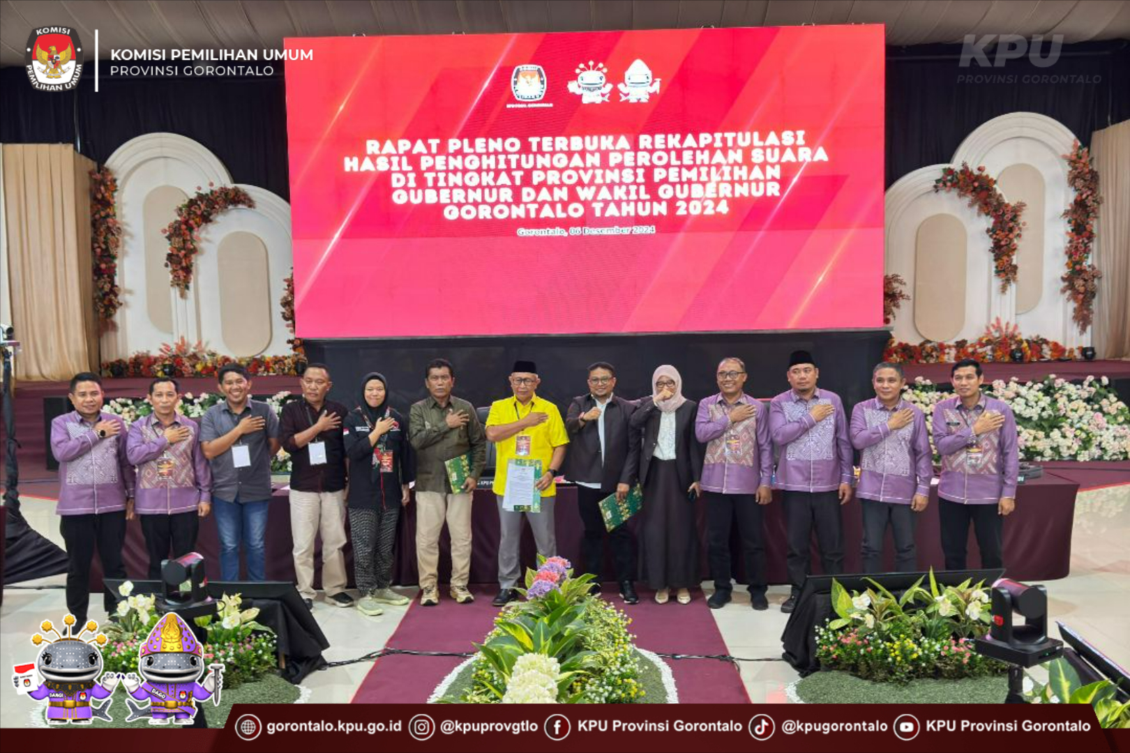 Acara ini turut dihadiri oleh Sekretaris Daerah Provinsi Gorontalo, Sofyan Ibrahim, yang mewakili Penjabat Gubernur Gorontalo, jajaran KPU Kabupaten/Kota, Bawaslu, serta saksi dari masing-masing pasangan calon. Kehadiran berbagai elemen ini mencerminkan semangat kolaborasi dalam mendukung proses demokrasi yang aman, tertib, dan transparan.