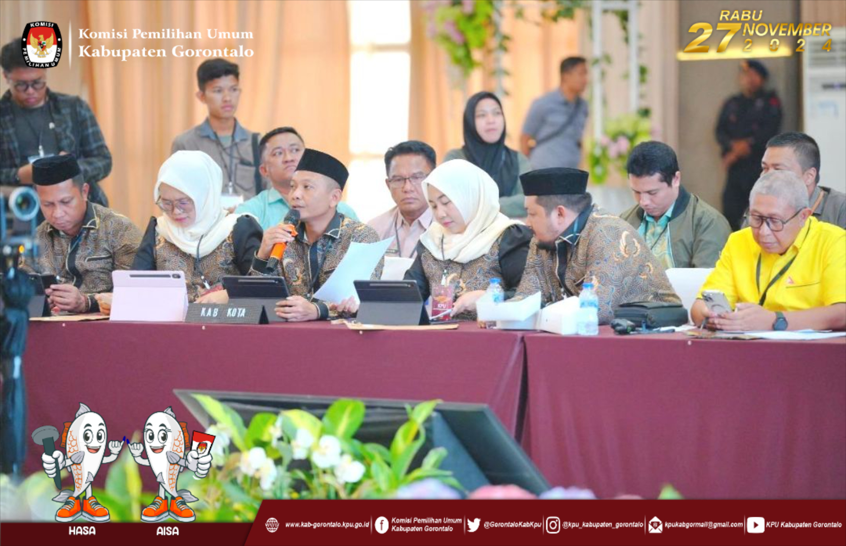 Hadir dalam acara ini berbagai elemen penting, termasuk Ketua KPU Kabupaten Gorontalo, Windarto Bahua, Sekretaris Daerah Provinsi Gorontalo, Sofyan Ibrahim, jajaran KPU dan Bawaslu, serta saksi dari masing-masing pasangan calon. Proses pleno berlangsung dengan lancar, didukung pengamanan ketat oleh TNI dan Polri.