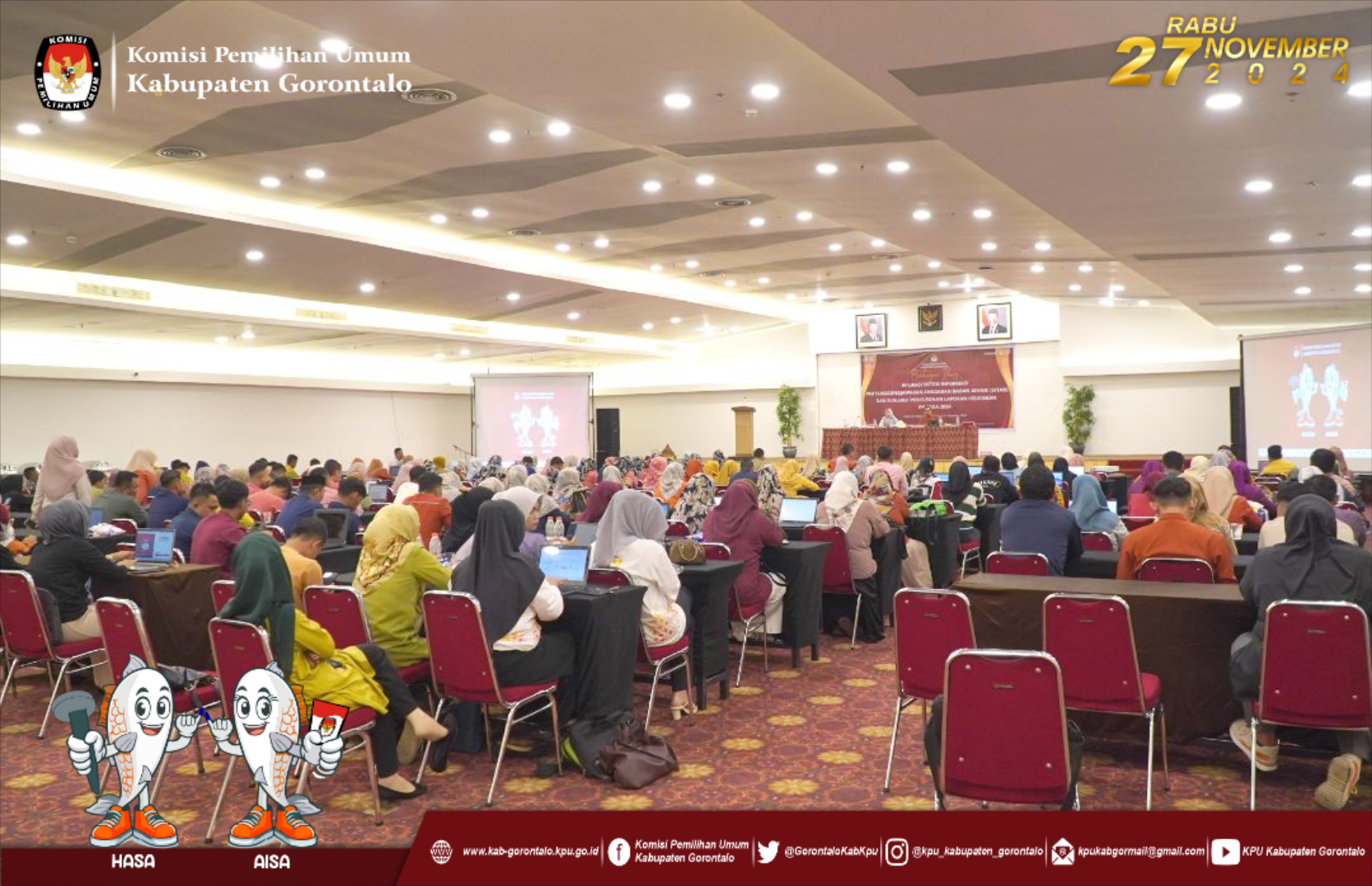 Kegiatan ini berlangsung di Hotel Fox, Kota Gorontalo, pada Kamis, 19 Desember 2024, dan dihadiri oleh seluruh sekretariat Badan Adhoc, yakni PPK dan PPS dari 9 kecamatan di Kabupaten Gorontalo.