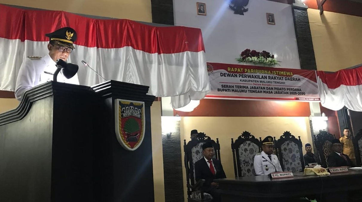 Faktanews.Com, Maluku Tengah- Dewan Perwakilan Rakyat Daerah Kabupaten Maluku Tengah (DPRD Malteng), menggelar rapat paripurna istimewa dalam rangka serah terima Jabatan dan  pidato perdana Bupati Maluku Tengah masa jabatan 2025-2030, Selasa, (4/3/25), berlangsung di Ruang Rapat Paripurna Utama DPRD Malteng.