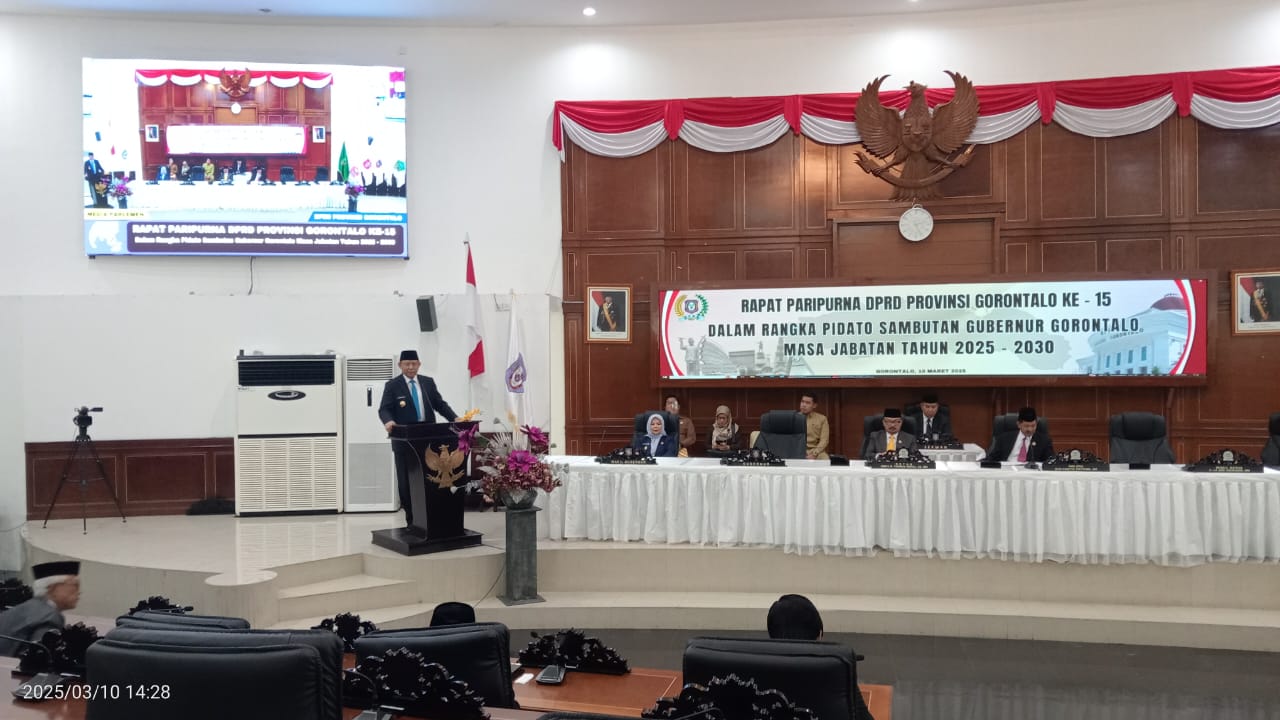 Rapat paripurna dipimpin Ketua DPRD Provinsi Gorontalo, Thomas Mopili, bersama para wakil ketua dan dihadiri Forum Komunikasi Pimpinan Daerah (Forkopimda).