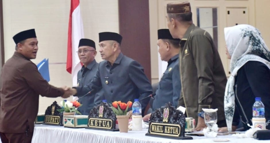 Bupati secara khusus mengapresiasi dukungan dari Fraksi Gerindra, Fraksi Nasional Demokrat, dan Fraksi Amanat Desa, yang dinilai memberikan kontribusi positif terhadap capaian pembangunan daerah.