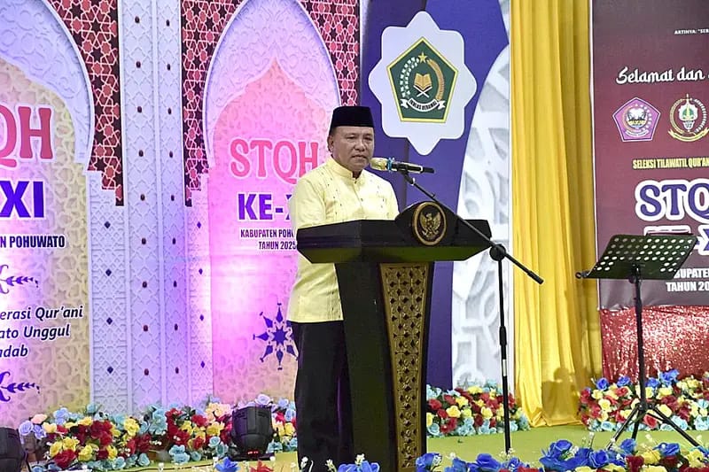 Faktanews.com, Pohuwato – Seleksi Tilawatil Qur’an dan Hadis (STQH) XI tingkat Kabupaten Pohuwato resmi dibuka oleh Ketua DPRD, Beni Nento, dalam sebuah seremoni yang berlangsung khidmat di Gedung Panua. STQH tahun ini diharapkan tidak hanya menjadi ajang kompetisi, melainkan menjadi momentum strategis untuk menanamkan nilai-nilai Al-Qur’an dalam kehidupan masyarakat.