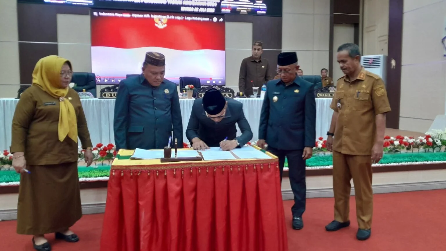 FAKTANEWS.COM – Dewan Perwakilan Rakyat Daerah (DPRD) Kabupaten Pohuwato menggelar rapat paripurna penandatanganan berita acara persetujuan bersama atas Rancangan Peraturan Daerah (Ranperda) tentang Pertanggungjawaban Pelaksanaan APBD Tahun Anggaran 2024, Selasa (22/7/2025), di ruang sidang utama DPRD Pohuwato.