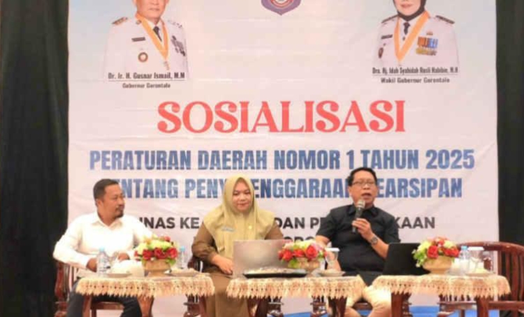 Hal ini ia sampaikan saat menjadi narasumber Sosialisasi Perda Kearsipan di Grand Palace Convention Center, Kota Gorontalo, Selasa (5/8/2025). Umar menilai hadirnya perda ini cukup terlambat, mengingat regulasi terkait arsip seharusnya sudah dimiliki daerah sejak 2007.