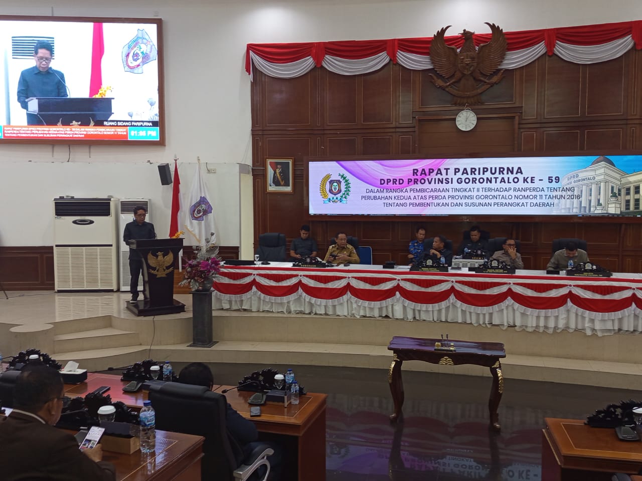 “Dengan disepakatinya Perda ini, struktur baru perangkat daerah Provinsi Gorontalo diharapkan mampu menjawab kebutuhan pemerintahan modern sekaligus memperkuat kualitas pelayanan publik kepada masyarakat,” tandasnya.