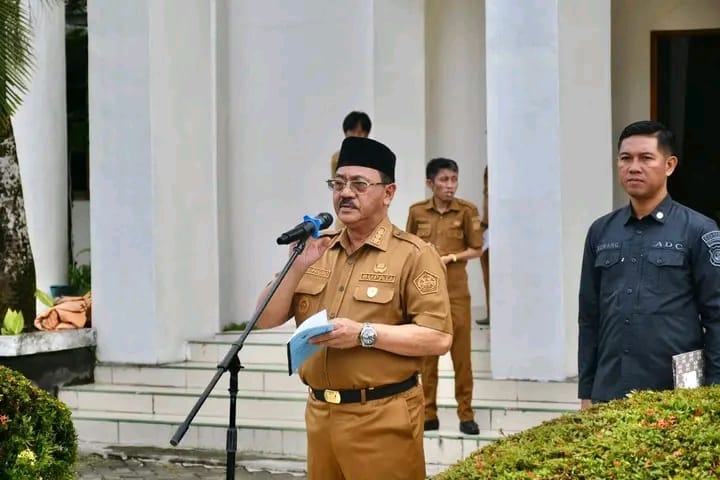FAKTANEWS.COM- Bupati Boalemo Drs. Rum Pagau pimpin apel awal tahun di lingkungan Pemerintah Kabupaten Boalemo yang berlangsung di halaman Kantor Bupati, Senin, 5/1/ 2026.