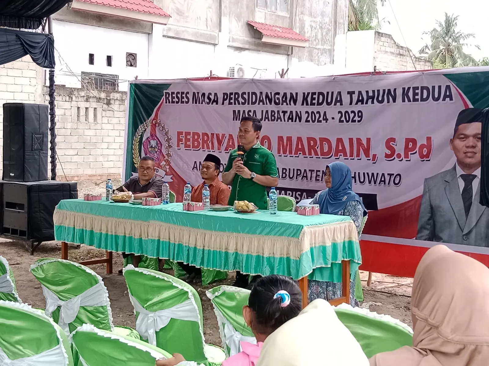 Faktanews.com, Pohuwato – Anggota DPRD Kabupaten Pohuwato, Febriyanto Mardain, menyerap berbagai aspirasi masyarakat saat menggelar reses masa persidangan kedua tahun kedua masa jabatan 2024–2029 di Desa Botubilotahu, Kecamatan Marisa, Minggu (08/02/2026).