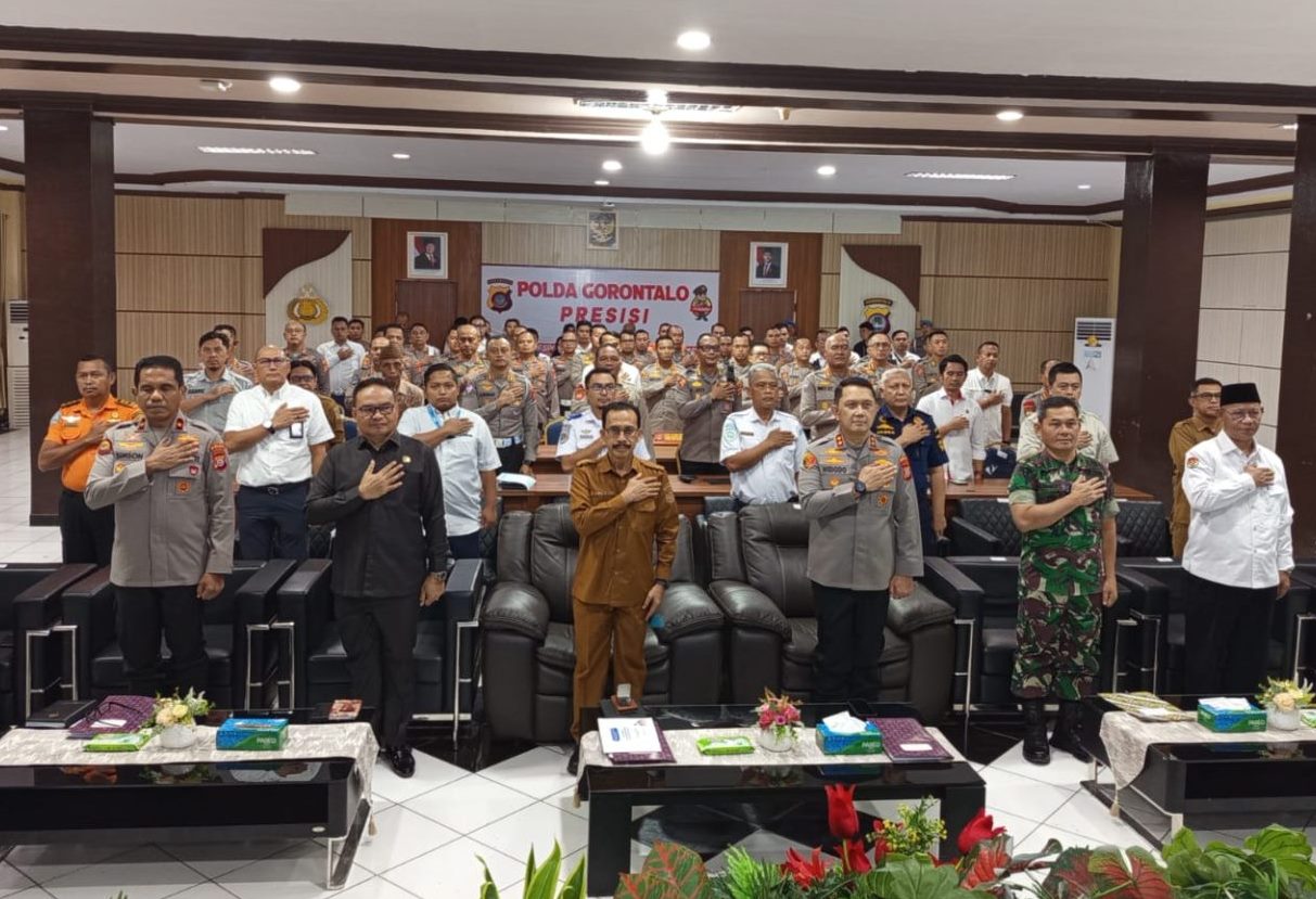 Rapat ini merupakan tindak lanjut arahan Kapolri terkait Operasi Ketupat 2026, yang bertujuan menjamin keamanan, kelancaran arus mudik dan balik, serta kesiapan pelayanan bagi masyarakat selama Hari Raya Idul Fitri. Kegiatan dipimpin Kapolda Gorontalo dan dihadiri Forkopimda, pimpinan instansi vertikal, serta perwakilan berbagai lembaga, antara lain Kementerian Agama, Dinas Perhubungan, Basarnas, BMKG, Jasa Raharja, Pertamina, KSOP, pihak Bandara Djalaluddin, dan FKUB Provinsi Gorontalo.