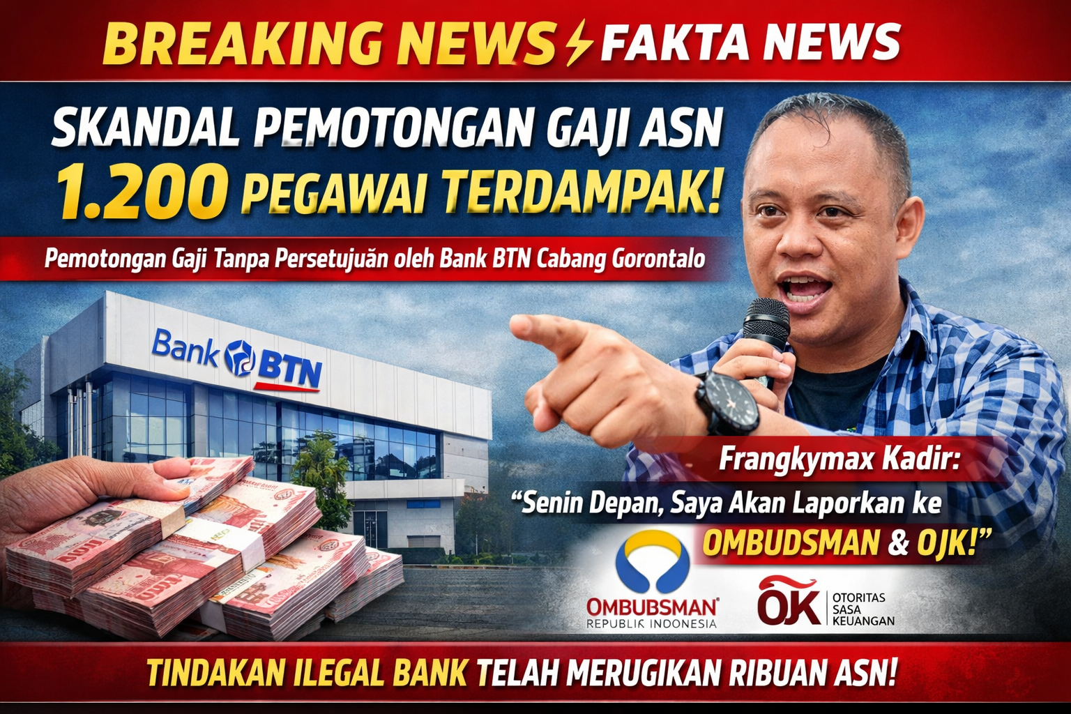 FAKTA NEWS – GORONTALO. Fakta baru kembali terungkap dalam polemik pemotongan gaji Aparatur Sipil Negara (ASN) di Gorontalo. Berdasarkan data yang berhasil diperoleh oleh Fakta News, praktik pemotongan gaji tanpa persetujuan yang terjadi pada 1 April 2026 ternyata bukan hanya menyasar ratusan ASN, melainkan mencapai 1.200 pegawai.