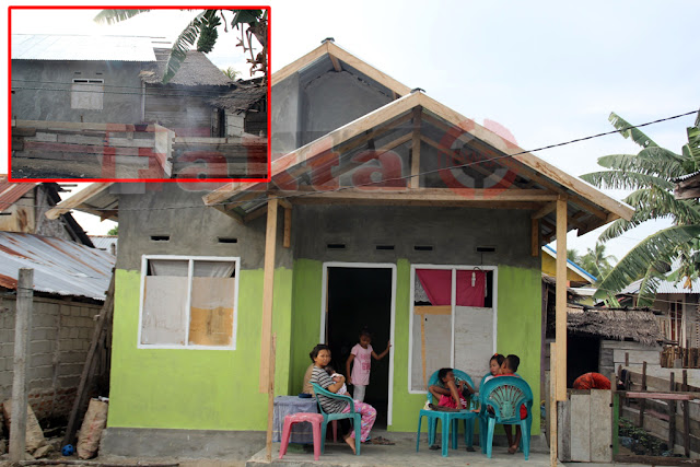 Bantuan rumah Mahyani yang di bangun oleh pemerintah desa Pohuwato Timur, saat ini sudah ditempati pemiliknya, namun pekerjaan bangunannya belum selesai.